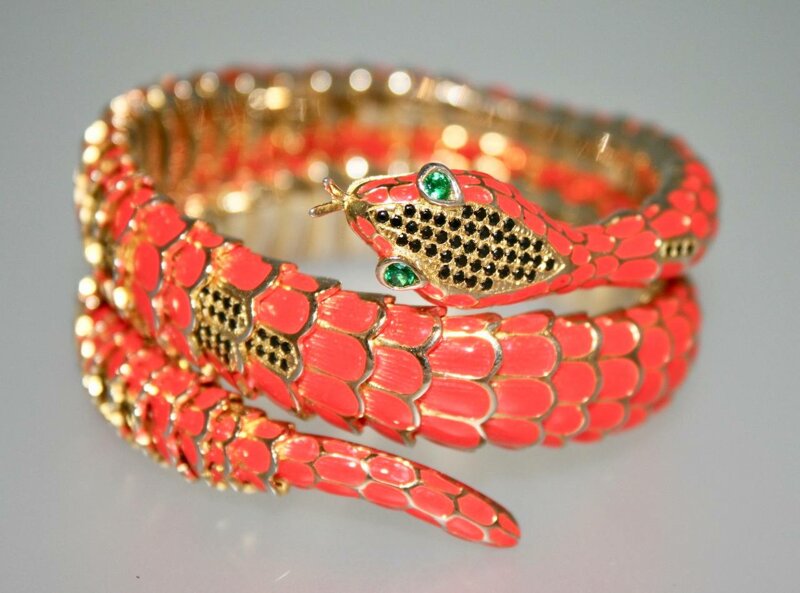 bracciale a forma di serpente in argento 925 con smalto arancione
