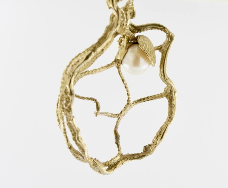 Ciondolo Penelope in bronzo con perla e conchiglia.